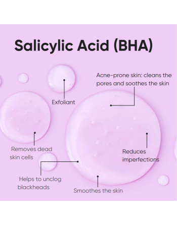 El ácido salicílico pertenece a una clase de medicamentos llamados agentes queratolíticos, un compuesto orgánico que se encuentra en plantas como el sauce, debido a su capacidad natural para favorecer la exfoliación, lo que ayuda a proteger la planta de infecciones bacterianas. Es un tipo de beta hidroxiácido (BHA) que está disponible en diferentes concentraciones, cada una de ellas preparada para un fin concreto. De mayor concentración para tratar el melasma, manchas oscuras y el acné, al reducir la inflamación y el enrojecimiento y destapar los poros obstruidos de la piel para permitir que los granos se reduzcan.
