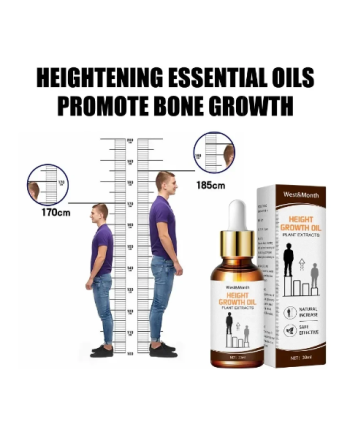 Excelente producto. Promueve el crecimiento óseo. Mejora la circulación sanguínea. La mayoría de las personas alcanzarán su masa ósea máxima entre los 25 y 30 años de edad. Por lo tanto este producto puede usarse hasta esa edad. La hormona del crecimiento es la glándula pituitaria que es del tamaño de un guisante (chícharo, arveja), y se ubica en la base del cerebro, responsable del crecimiento de nuestros huesos, la composición corporal y el metabolismo. Sin embargo, a partir de la mediana edad, la glándula pituitaria reduce lentamente la cantidad de hormona del crecimiento que produce. La esencia es desencadenar el crecimiento de estas hormonas y ayudarlo a aumentar su altura después de los 18 años. El aceite esencial puede promover que el cuerpo sintetice la hormona del crecimiento y haga que los huesos vuelvan a crecer. Es para personas de 12 a 36 años, y cuanto más jóvenes, mejor. Este producto puede estimular la división y el crecimiento de las células óseas y aumentar la altura. Se aplica masajeando los pies por 20 minutos. Recomendable cuidar la alimentación, aumentar la ingesta de proteínas y hacer ejercicios. Entre algunos de sus componentes tenemos aceite de lavanda, extracto de espino, entre otros.