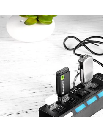 Interruptores individuales: 7 y 4 puertos en los concentradores USB tienen interruptores individuales y controlados de forma independiente.